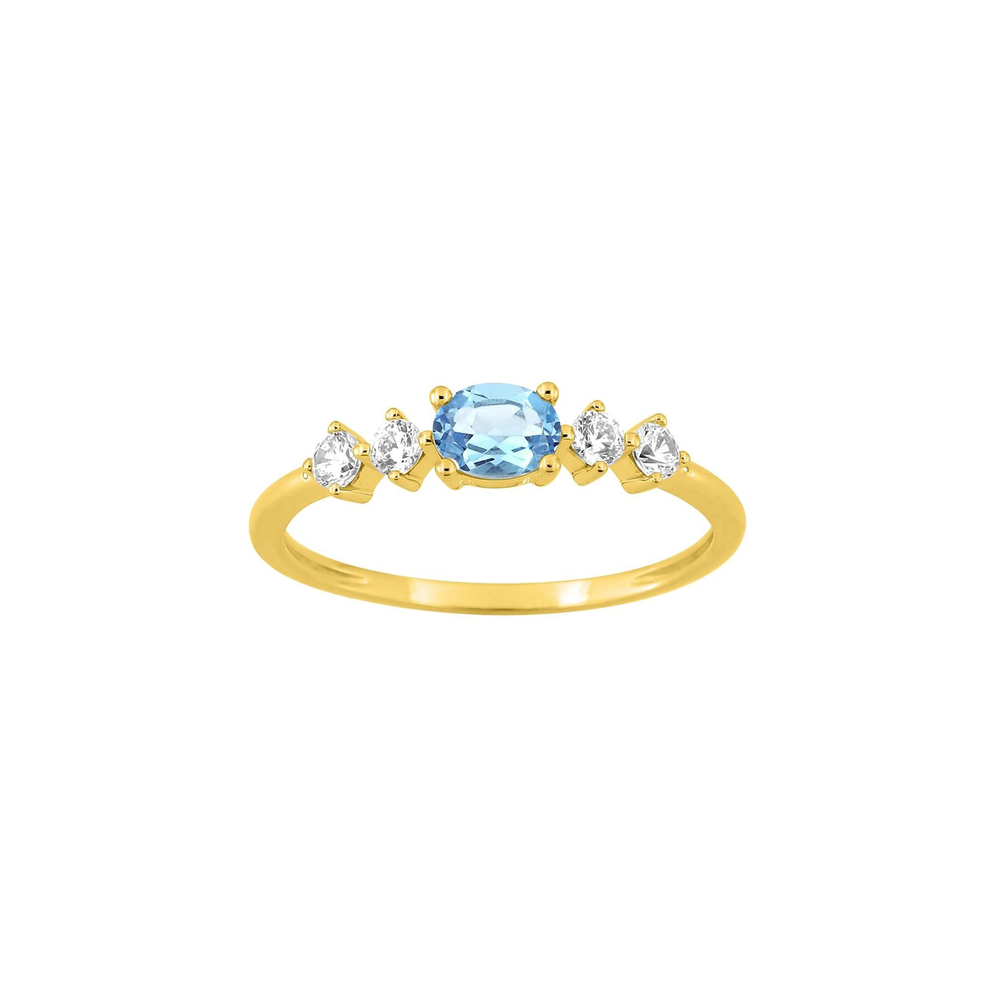 Bague en or jaune, oxyde de zirconium et topaze bleue