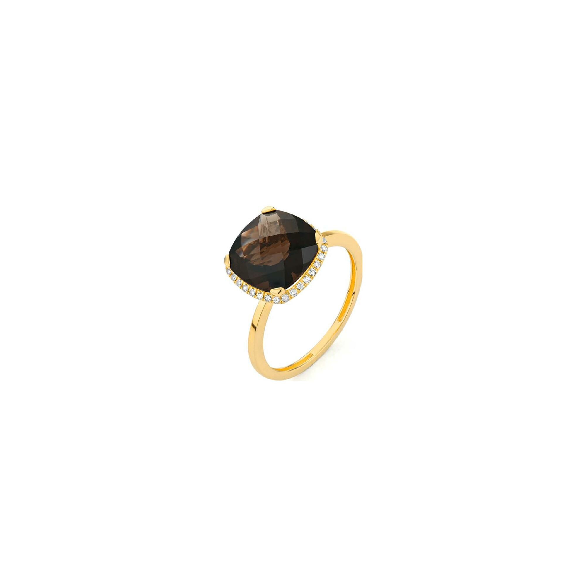 Bague en or jaune, quartz et diamants