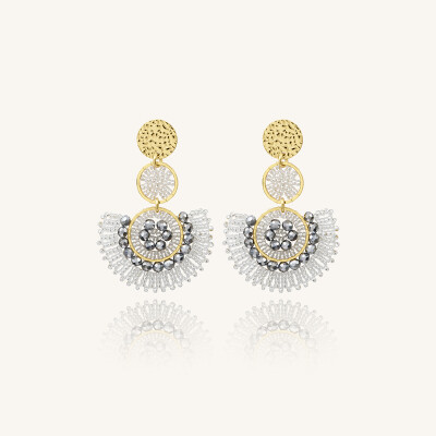 Boucles d'oreilles Sàntibé Bijoux Cancun en laiton, métal doré et perles argent