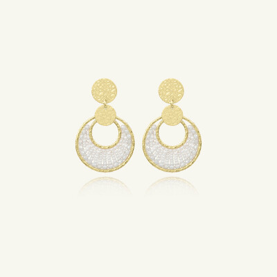 Boucles d'oreilles Sàntibé Bijoux Mini Luna en laiton, métal doré et perles blanc