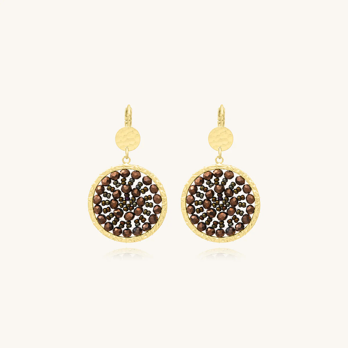 Boucles d'oreilles Sàntibé Bijoux Mini Solène en laiton, métal doré et perles noisette