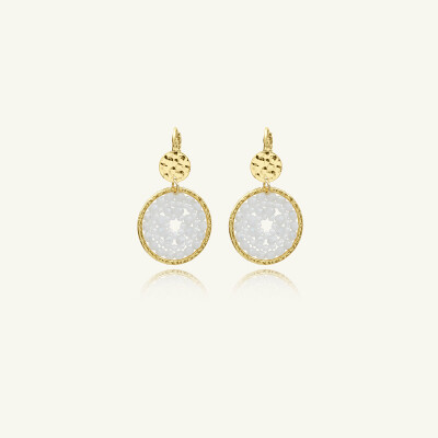 Boucles d'oreilles Sàntibé Bijoux Paradis en laiton, métal doré et perles blanc