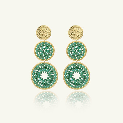 Boucles d'oreilles Sàntibé Bijoux Sévillana en laiton, métal doré et perles vert d'eau