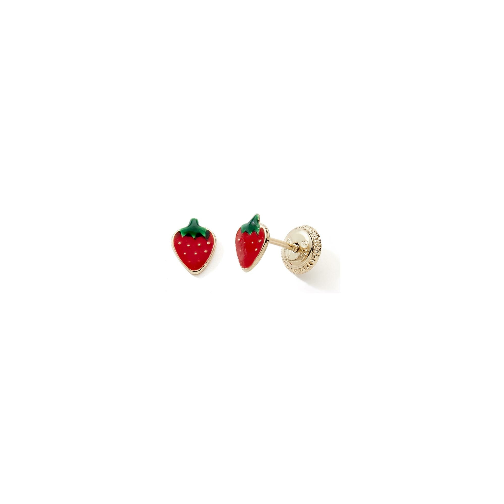 Boucles d’oreilles fraise laquée en or jaune