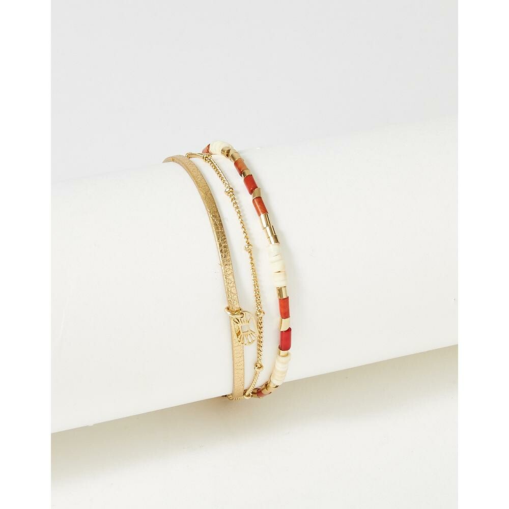 Bracelet FlowersforZoé APPOLINE en acier doré et cuir, T1