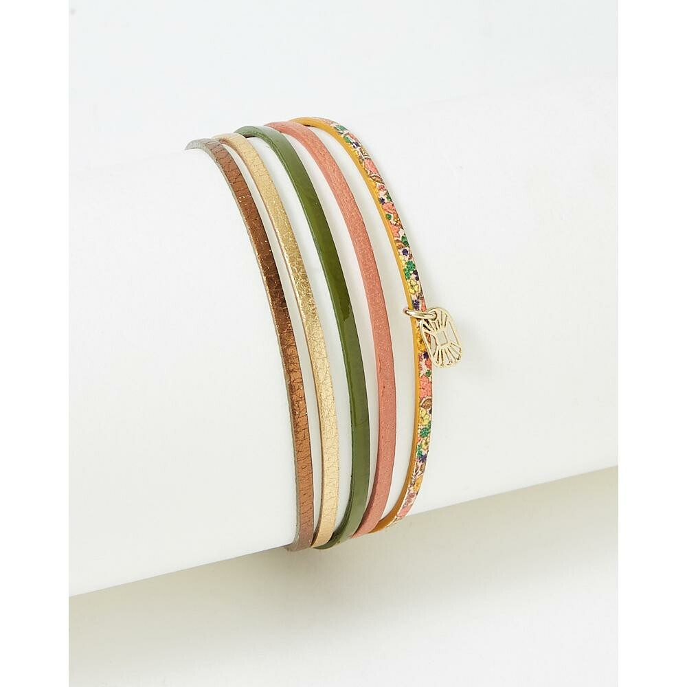 Bracelet FlowersforZoé ARTISTE en acier doré et cuir, T1