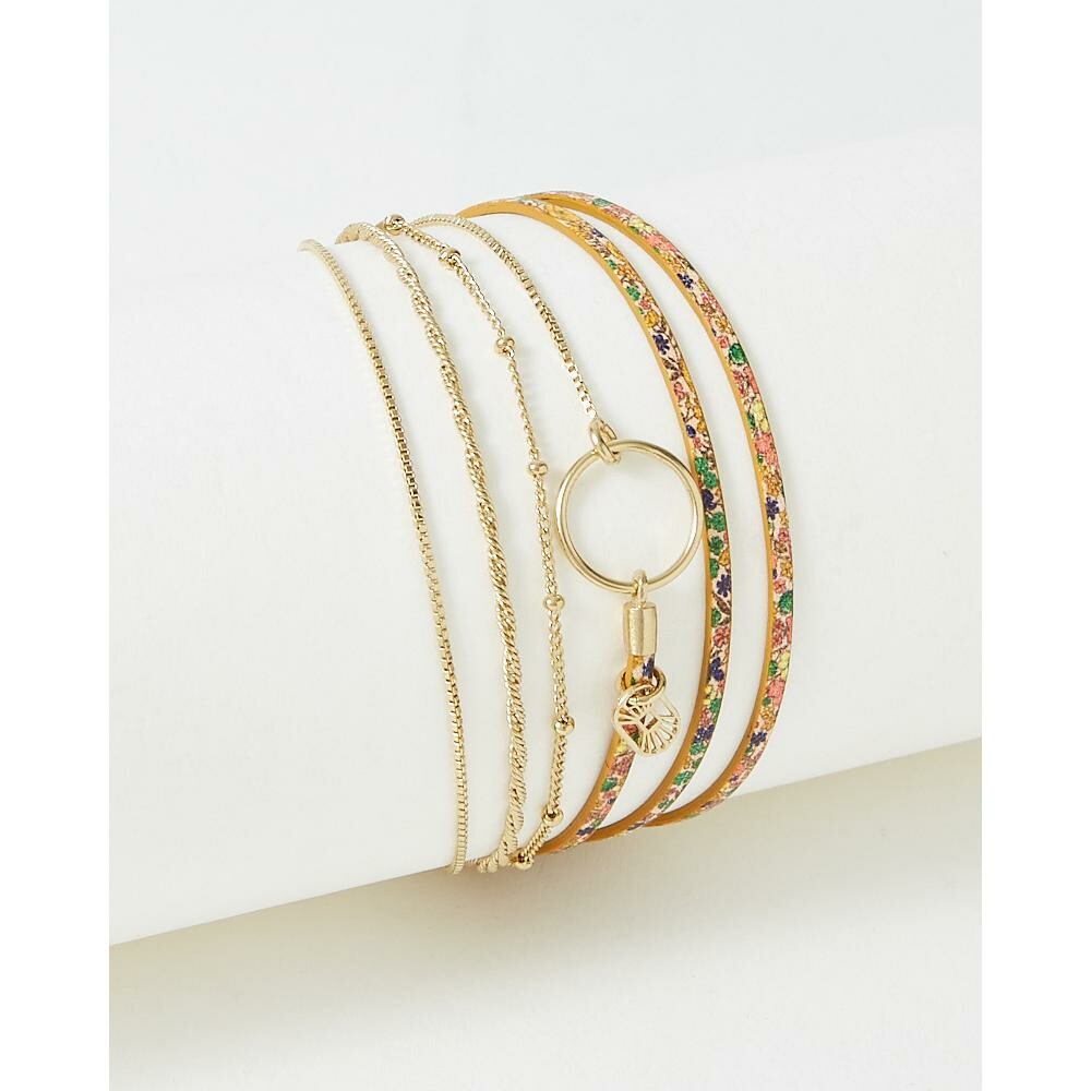 Bracelet FlowersforZoé CLOVER en acier doré et cuir, T1