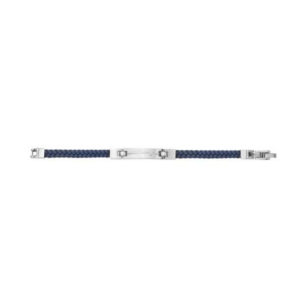 Bracelet Phebus en acier, cuir et diamant 0.015ct