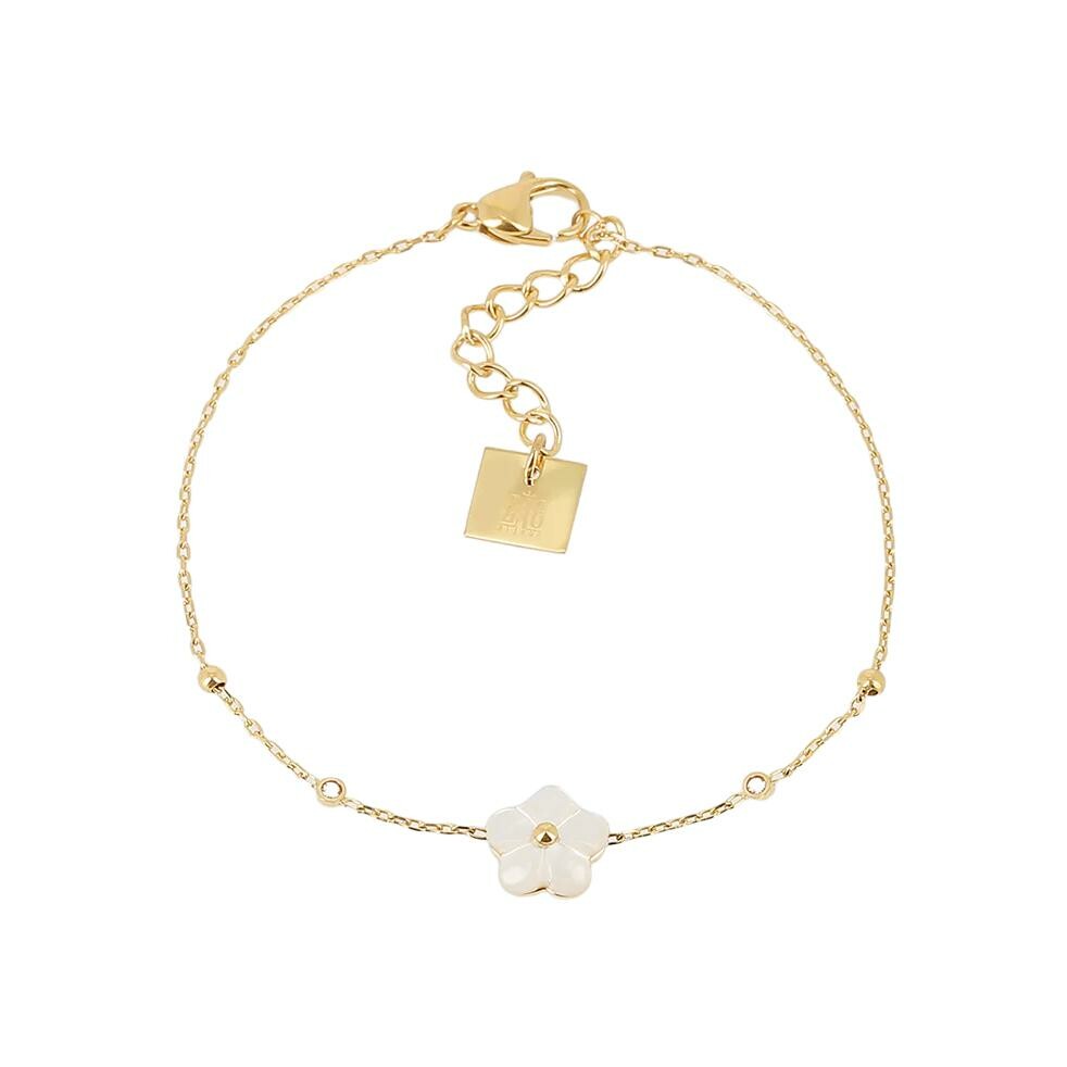 Bracelet Zag Vahiné en acier doré, oxyde de zirconium et nacre