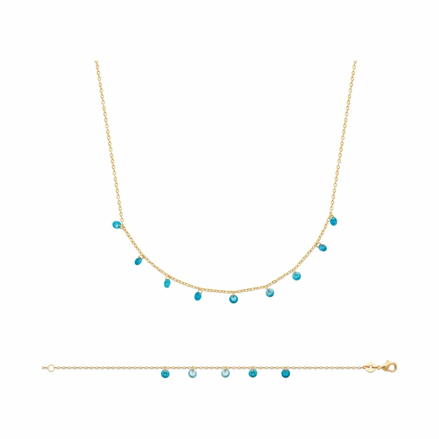 Collier en plaqué or et pierre synthétique, 45cm