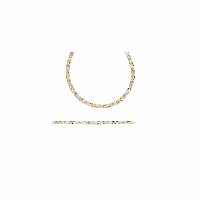 Collier en plaqué or jaune et acier, longueur de 50cm