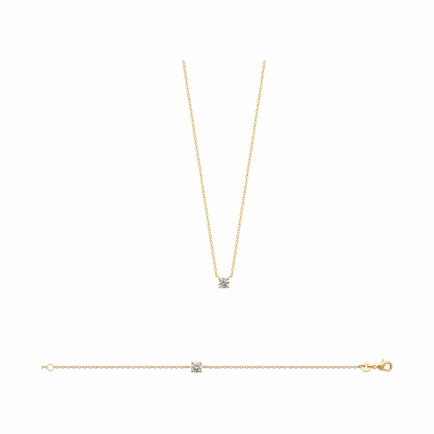 Collier en plaqué or et oxydes de zirconium, 45cm