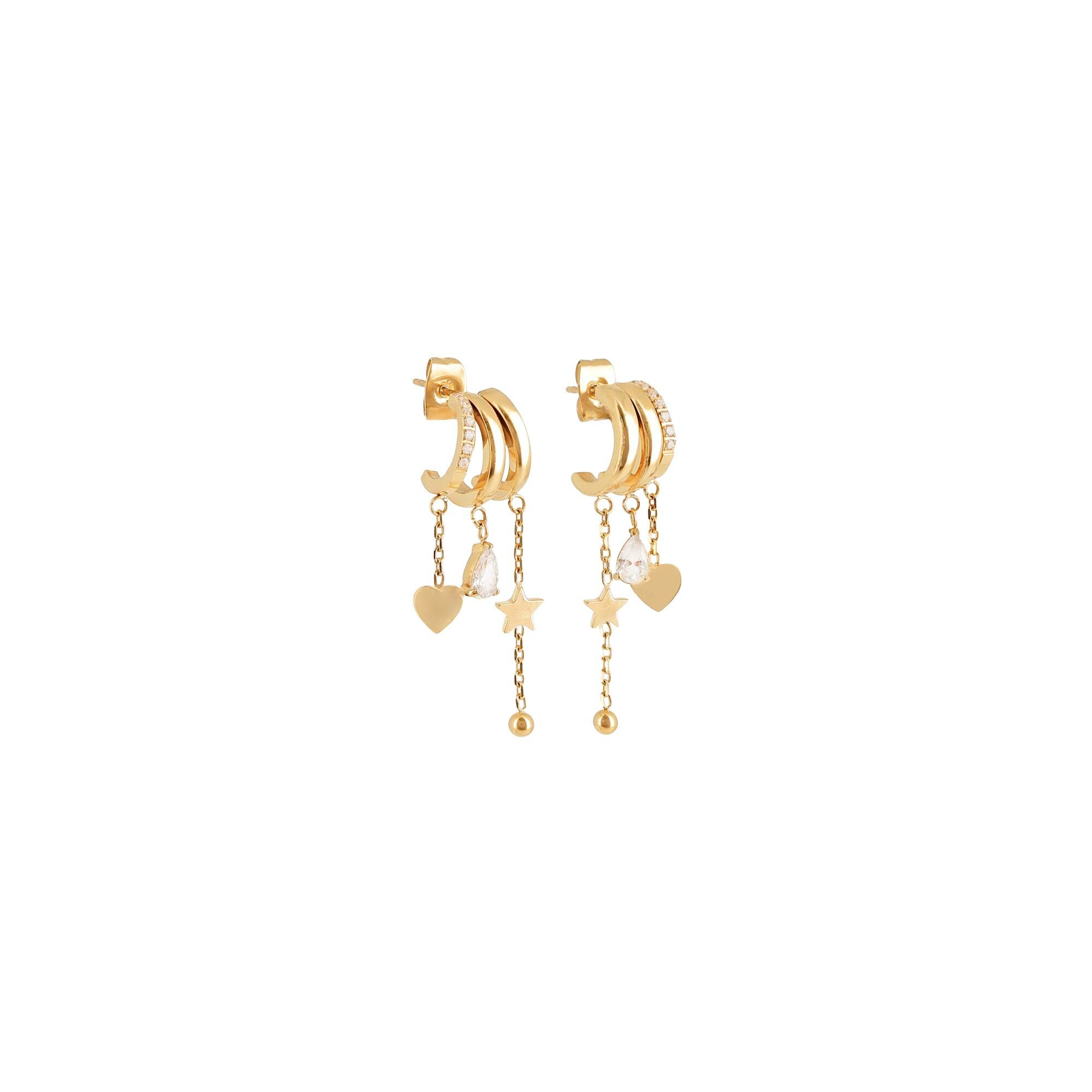 Mini boucles d’oreilles Zag en acier doré et oxyde de zirconium