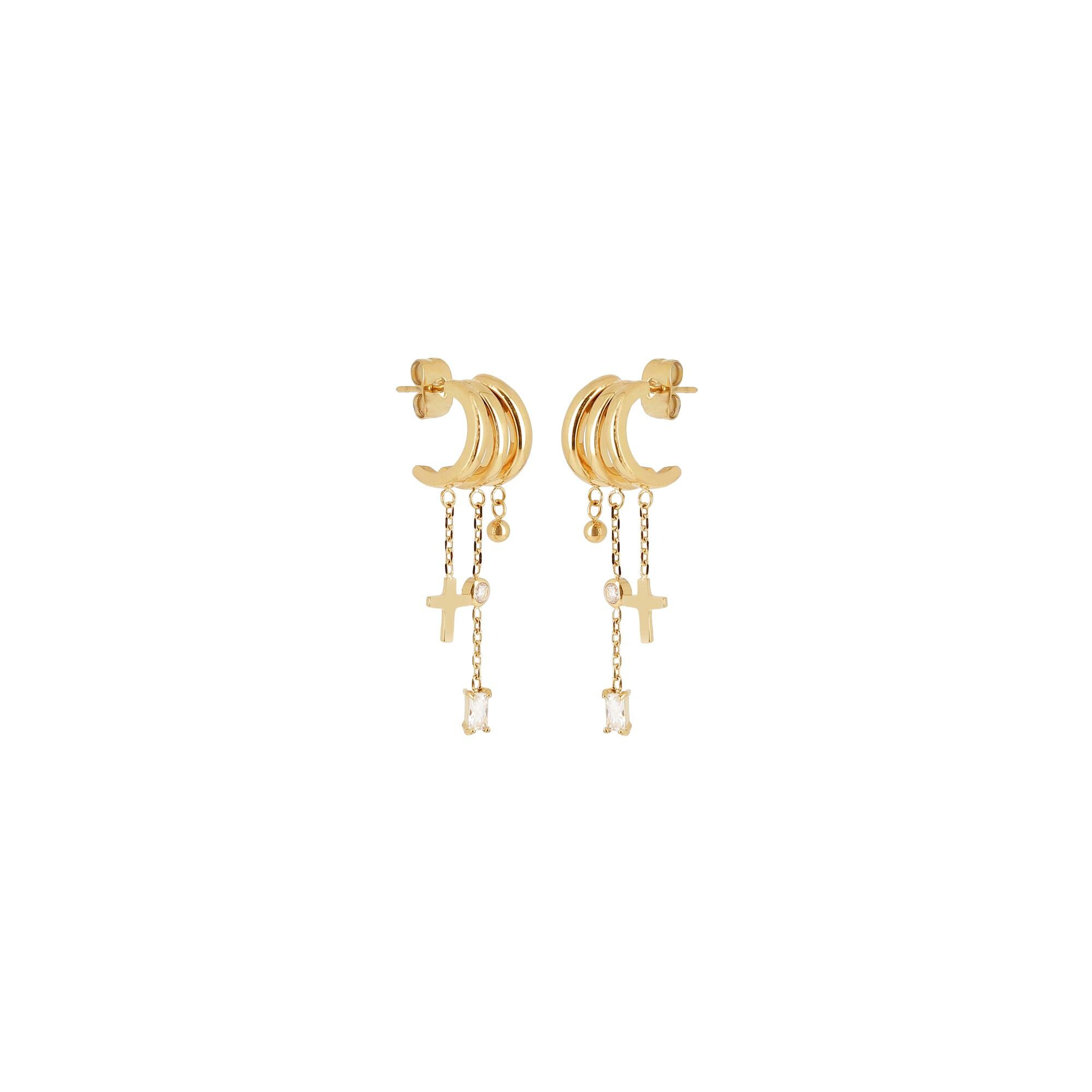 Mini boucles d’oreilles Zag en acier doré et oxyde de zirconium