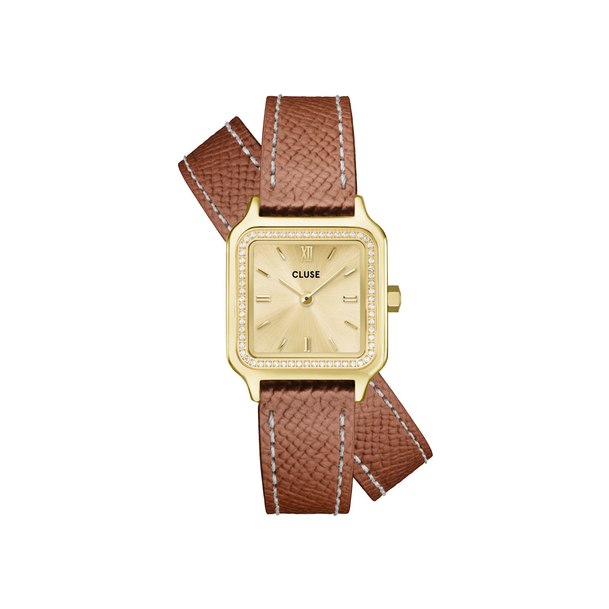 Montre Cluse Gracieuse Petite Watch Double Leather, White stones, Nutshell, Full Gold Colour