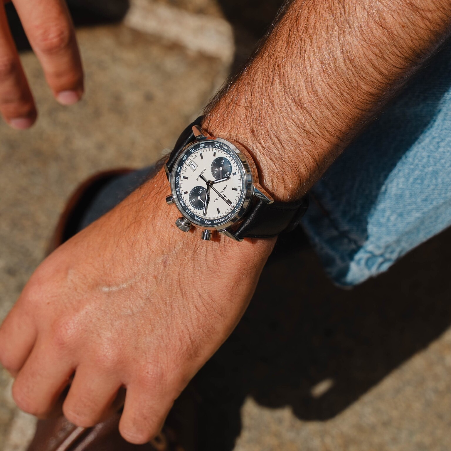 La montre HAMILTON Intra-Matic Auto Chrono, au look à la fois sportif et classique, est la réinterprétation moderne d’un modèle emblématique datant de 1968. Associant charme sixties et mouvement automatique H-31 exclusif, son cadran panda caractéristique saura attirer tous les regards.